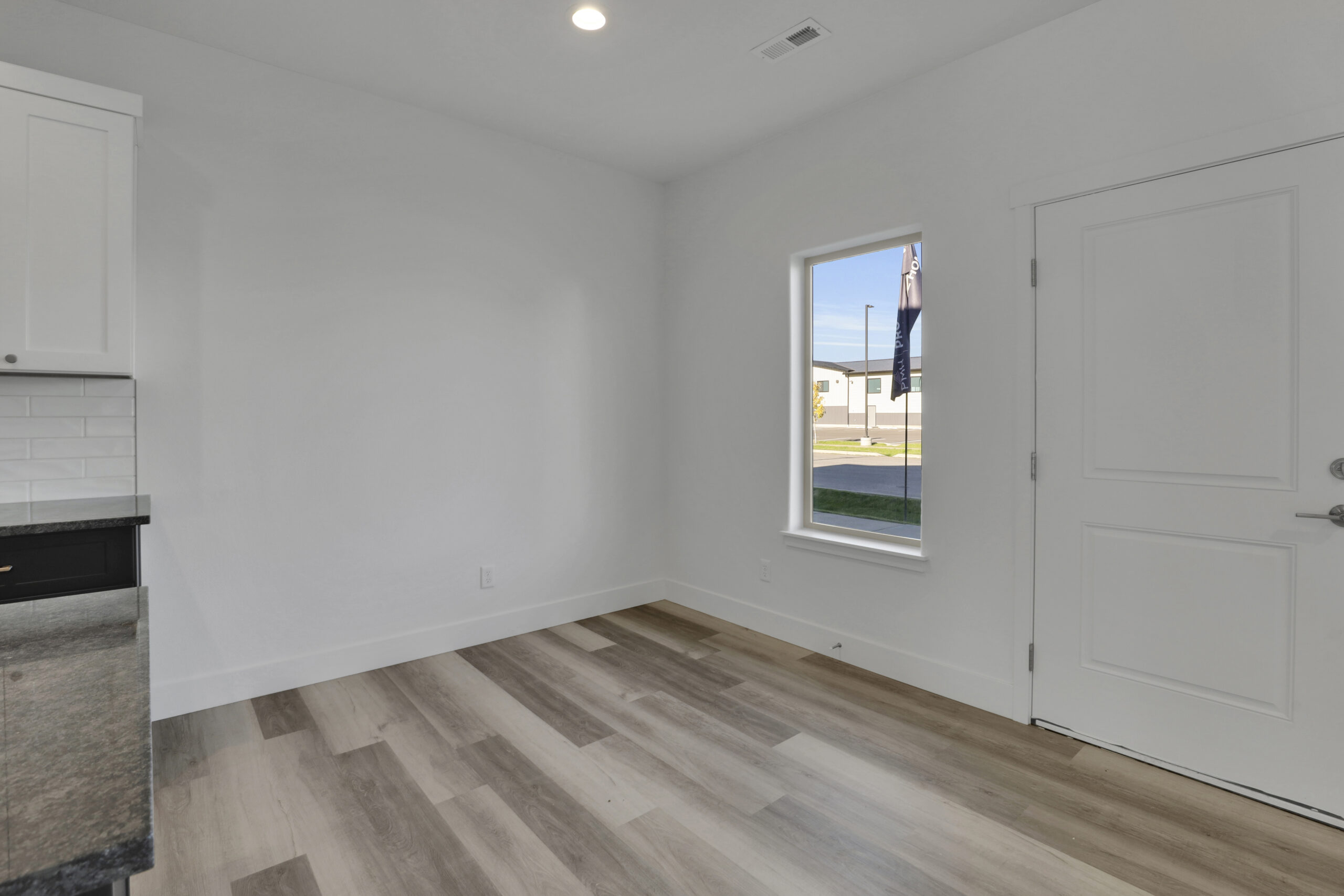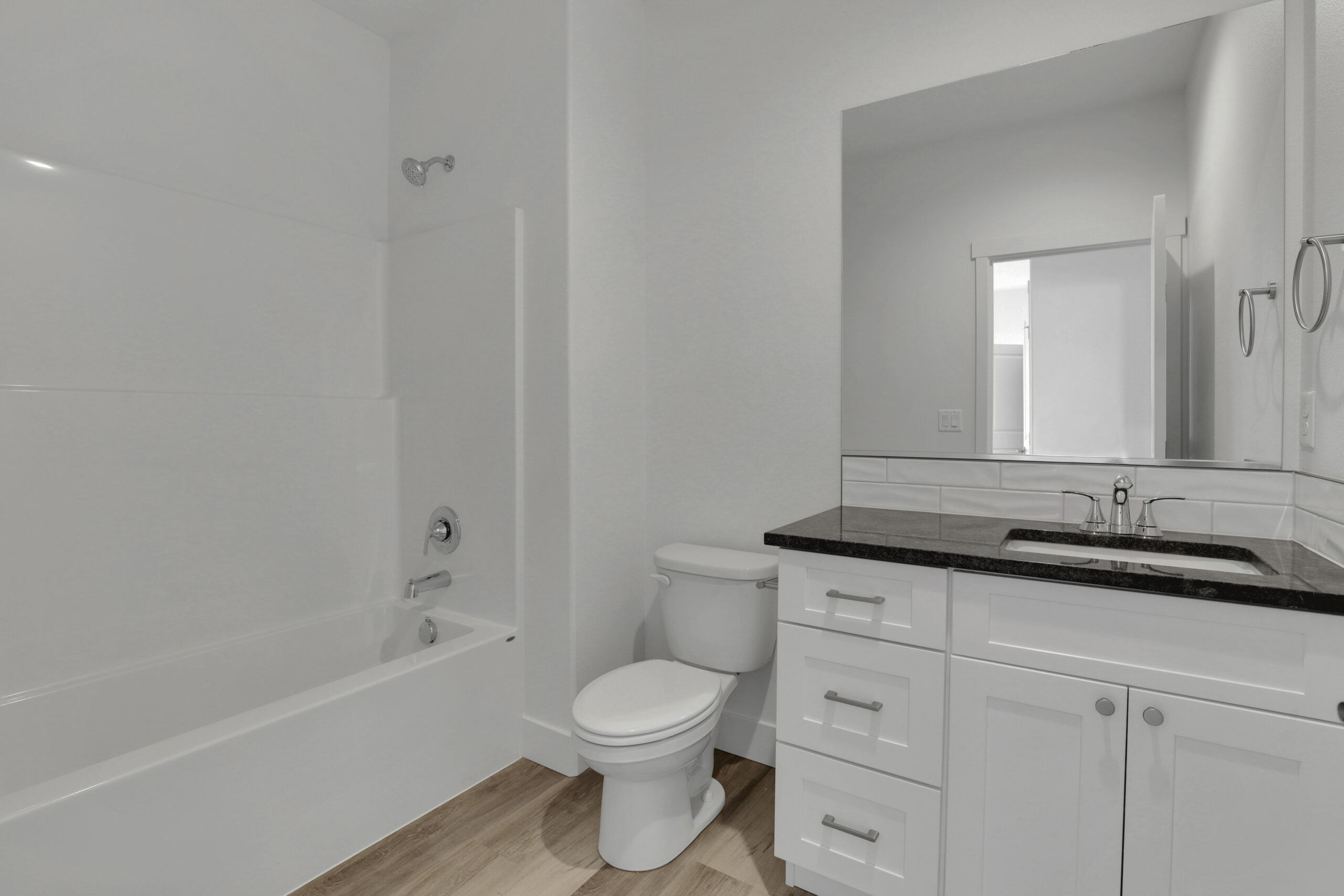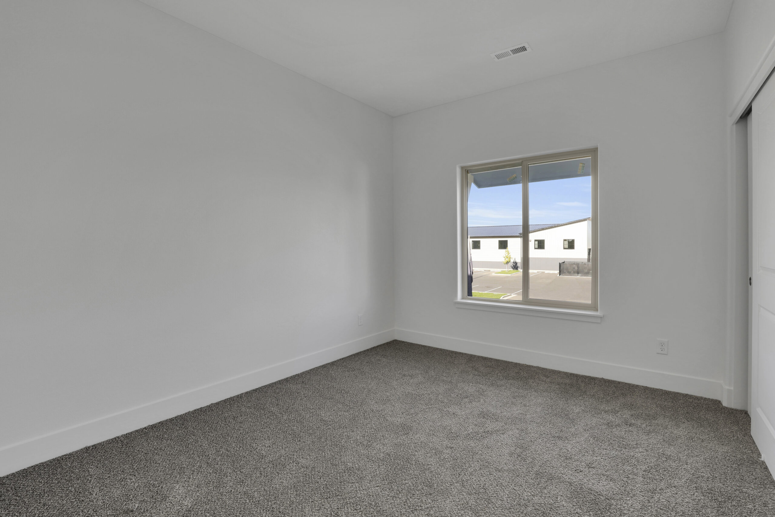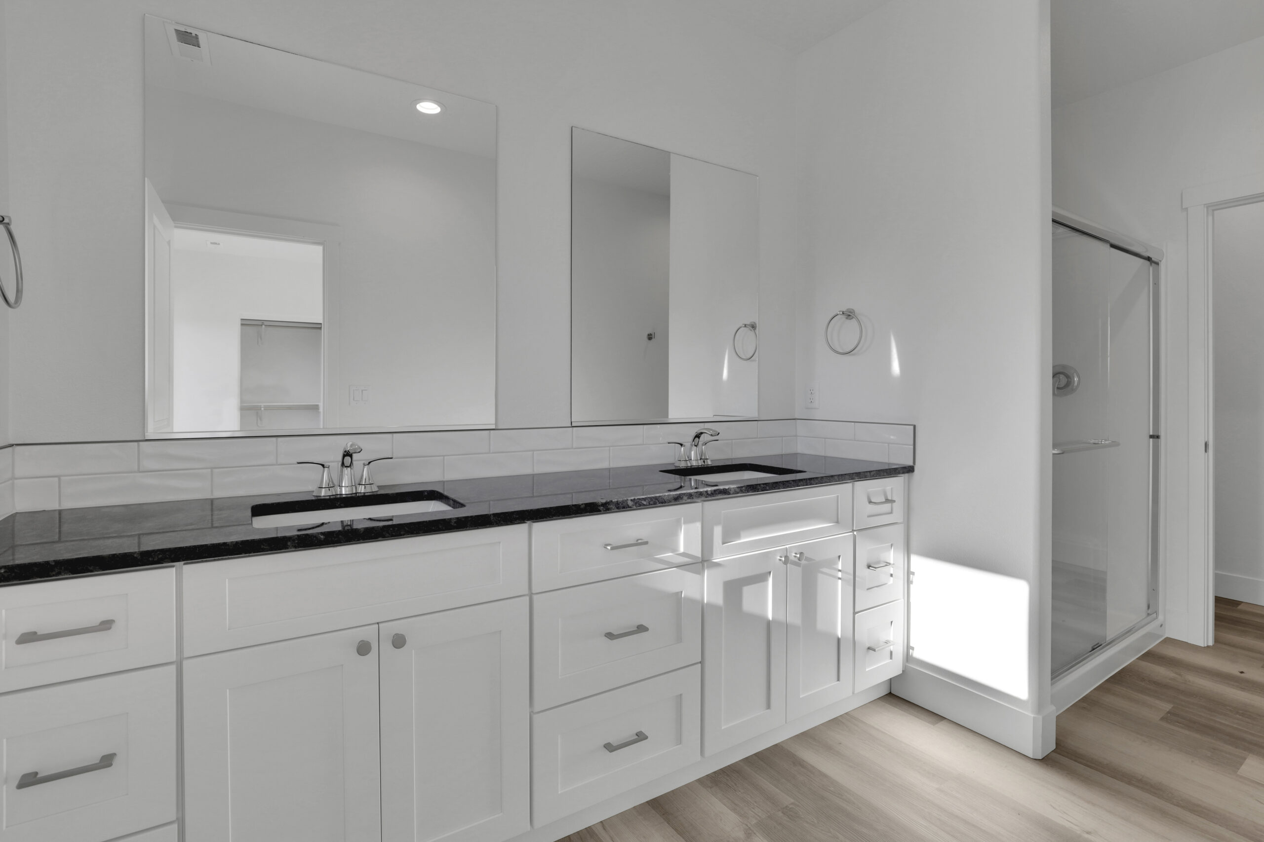 Upstairs, three bedrooms and two bathrooms maximize comfort and privacy. The primary bedroom is set apart for added seclusion, while a central hallway connects all rooms. A linen closet and laundry area enhance convenience for modern living.