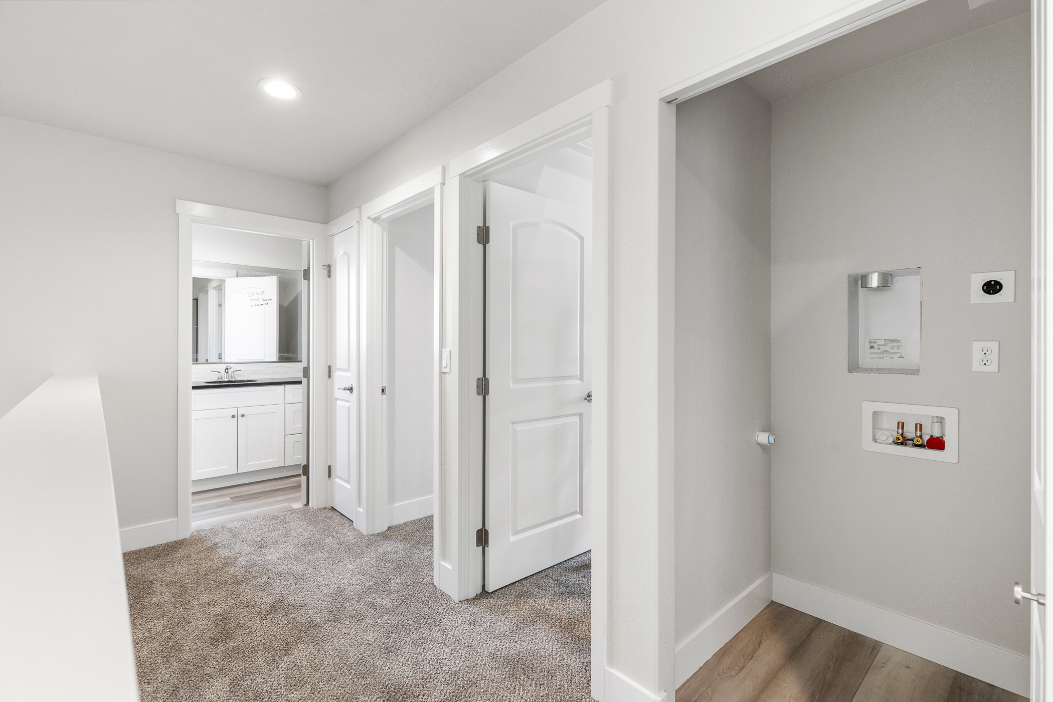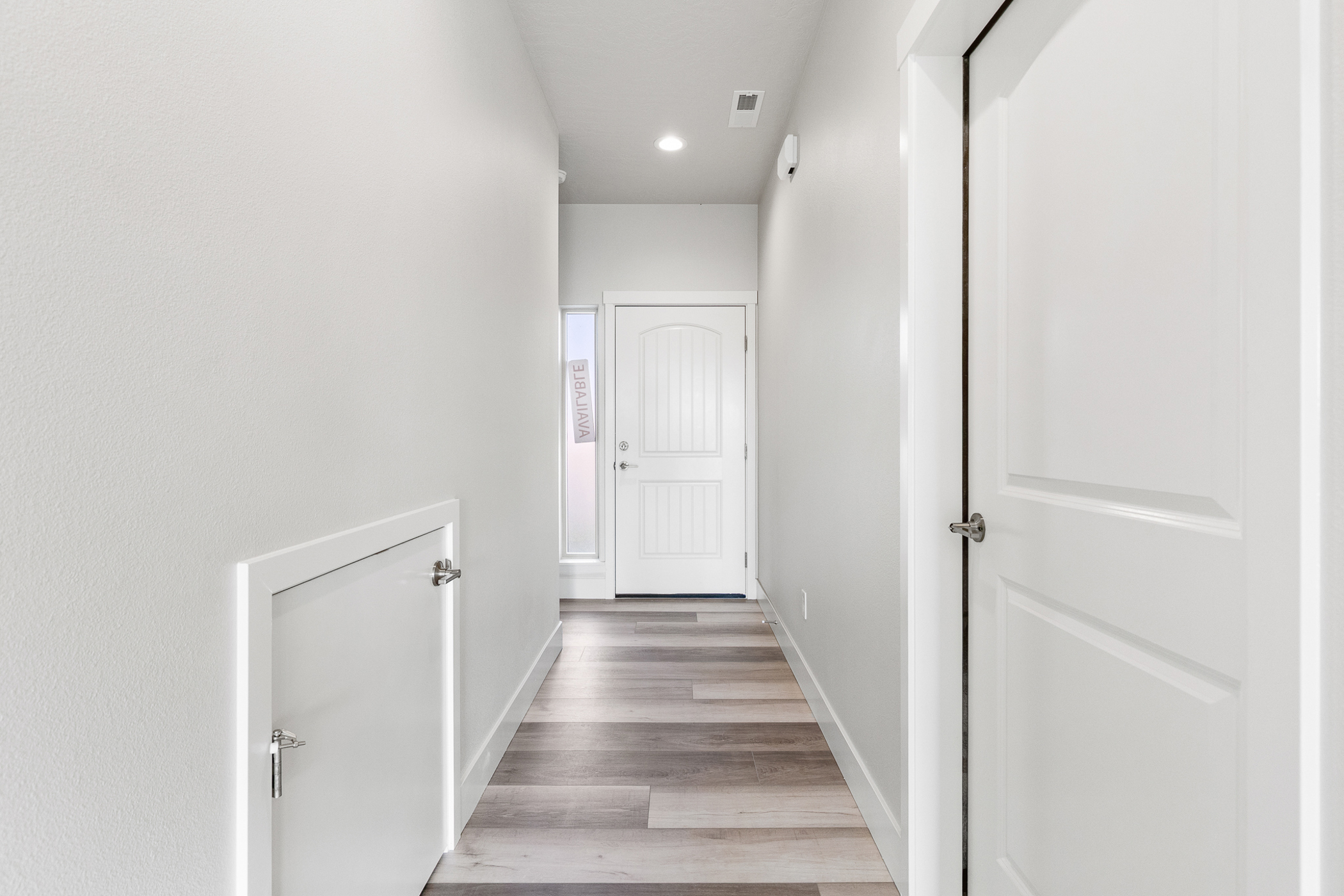 Blending style and practicality, the 1478 townhouse plan offers an open-concept layout where the kitchen, great room, and dining area flow effortlessly together. Expansive windows highlight serene backyard views. A conveniently located half bathroom serves both residents and guests. Upstairs, the primary suite provides a private retreat with a walk-in closet and a spa-like en-suite bathroom. Two guest bedrooms share a full bathroom with both a bathtub and shower, creating a comfortable and inviting home.