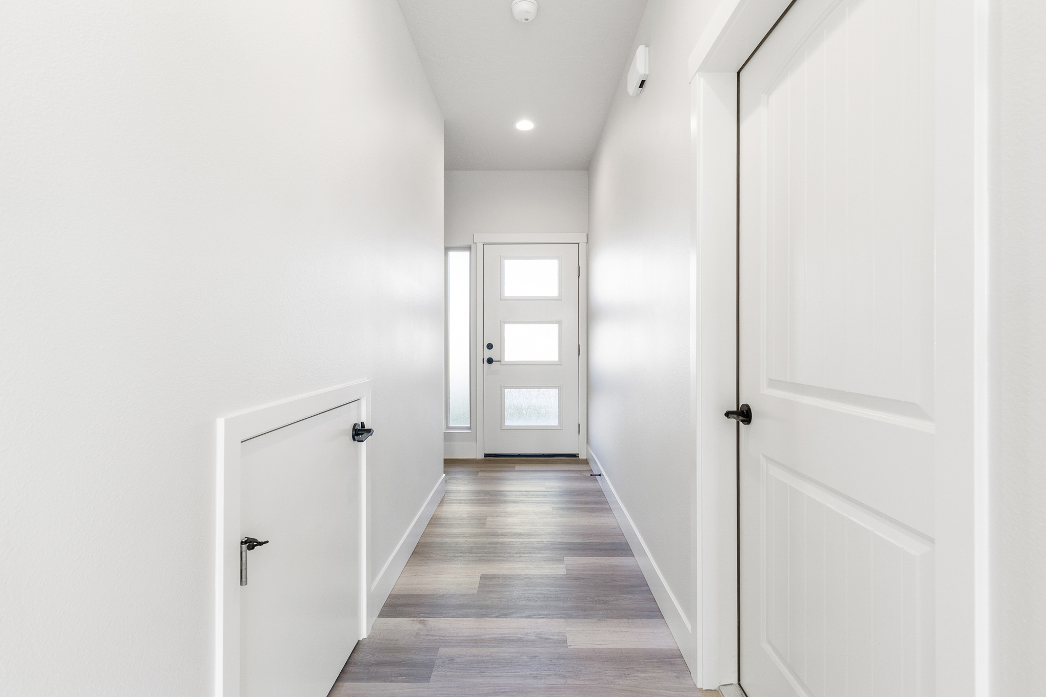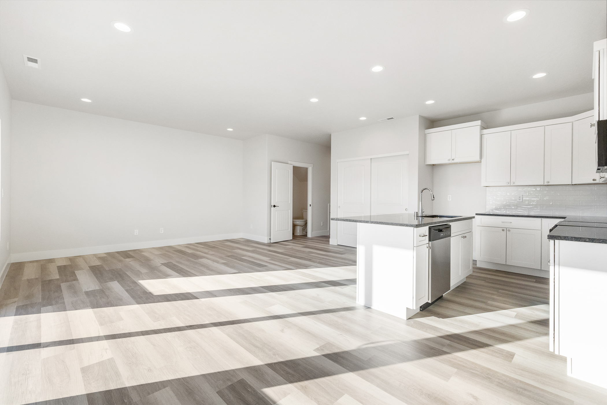 Blending style and practicality, the 1478 townhouse plan offers an open-concept layout where the kitchen, great room, and dining area flow effortlessly together. Expansive windows highlight serene backyard views. A conveniently located half bathroom serves both residents and guests. Upstairs, the primary suite provides a private retreat with a walk-in closet and a spa-like en-suite bathroom. Two guest bedrooms share a full bathroom with both a bathtub and shower, creating a comfortable and inviting home.