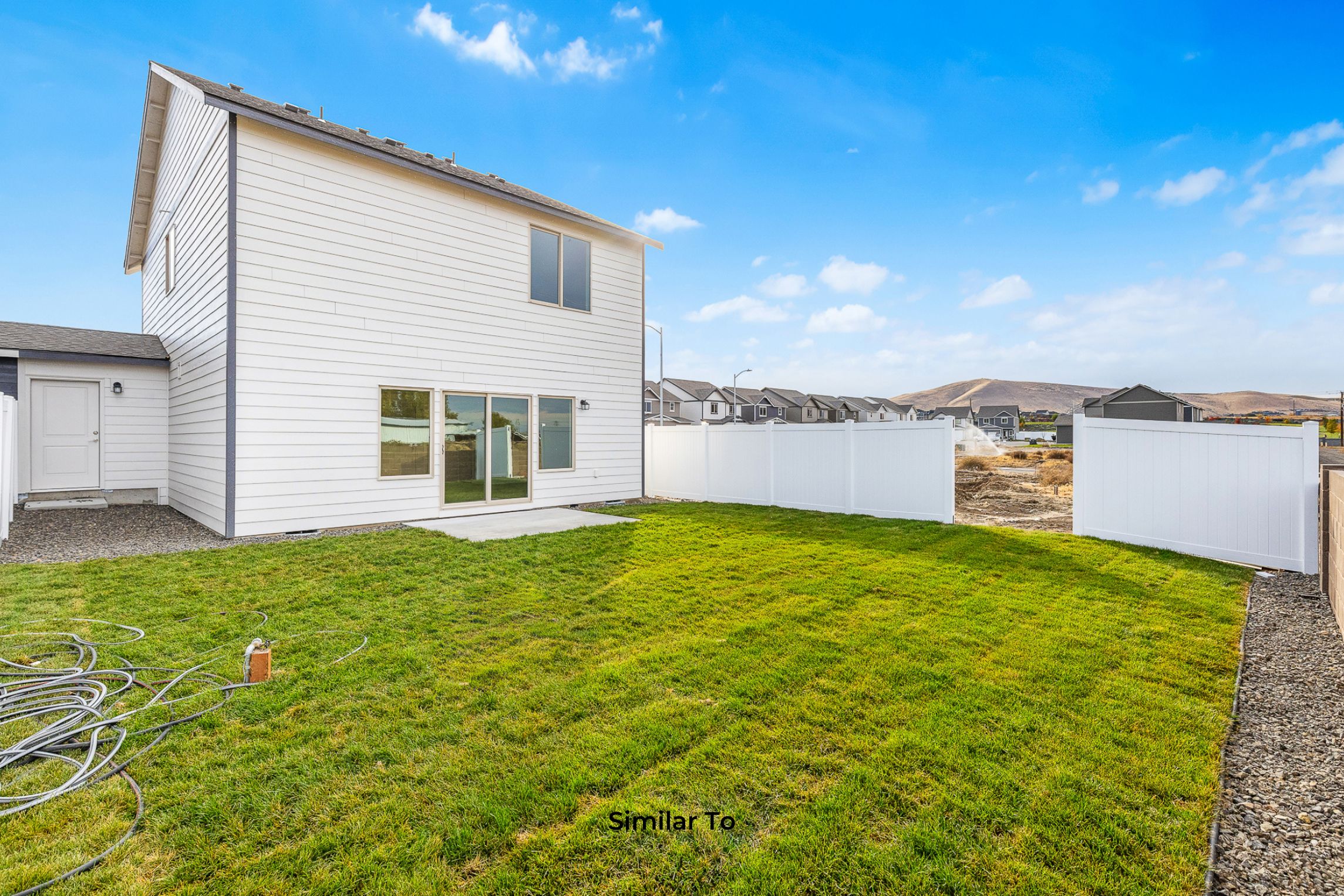 White vinyl fencing with one gate