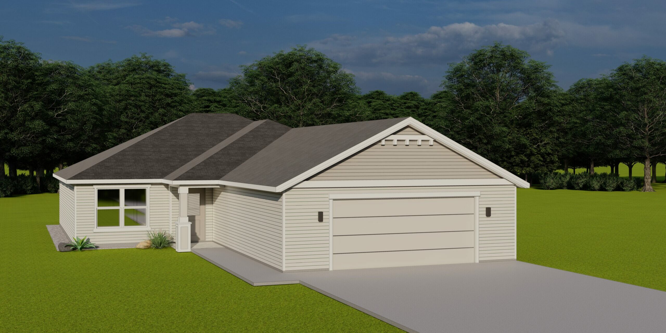 Modern elegance meets functional design in the 1696 plan. The spacious great room connects seamlessly to a contemporary kitchen and dining area, creating the perfect space for family gatherings and entertaining. The primary suite is a private oasis, featuring a stunning en-suite bathroom and a walk-in closet. Two additional bedrooms, located near a shared bathroom, ensure comfort and privacy for all. Thoughtfully crafted, this home elevates everyday living with refined style.